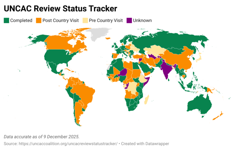 - Our UNCAC Review Status Tracker map brings together all available information on countries’ reviews in one place. The review processes are typically difficult to follow;