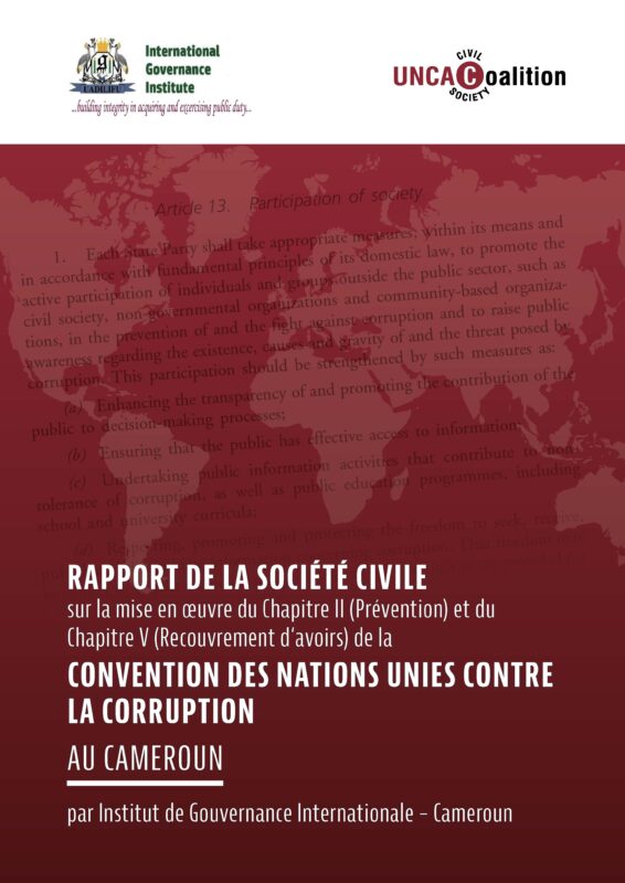 A recent report by International Governance Institute – Cameroon exposes how, despite progress in developing an anti-corruption legal and policy framework, the country struggles with weak implementation of key provisions under UNCAC Chapters II (Preventive Measures) and V (Asset Recovery). The report is intended as a contribution to the second cycle of the UNCAC implementation review process, produced with technical and financial support from the UNCAC Coalition.